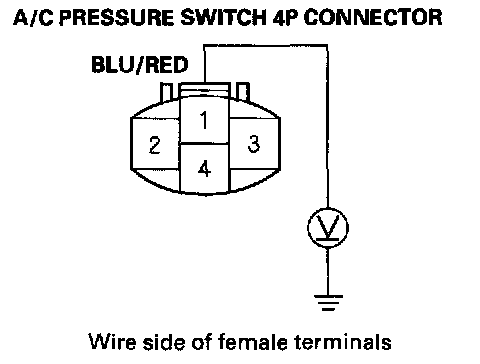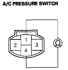 5. Check for continuity between the No. 1 and No. 4 terminals of the A/C pressure switch.