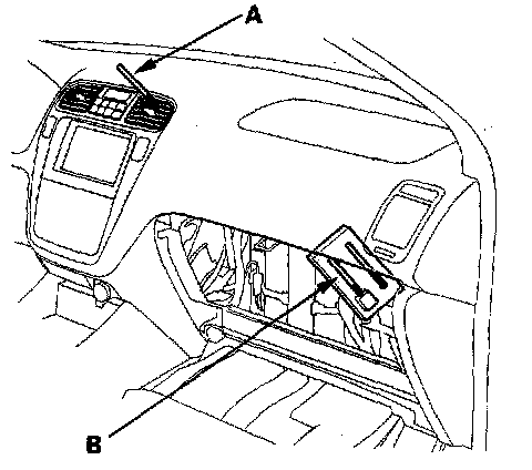 3. Remove the glove box stops, and let the glove box hang down.