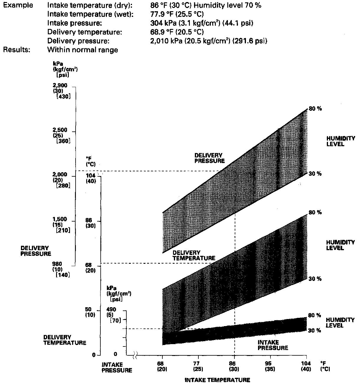 - Mark the intake temperature (ambient air temperature) along the bottom line.