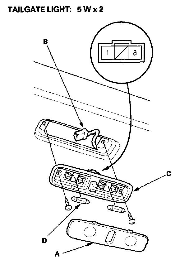 6. If the continuity is not as specified, check the bulb(s) (D). If the bulbs are OK, replace the light.