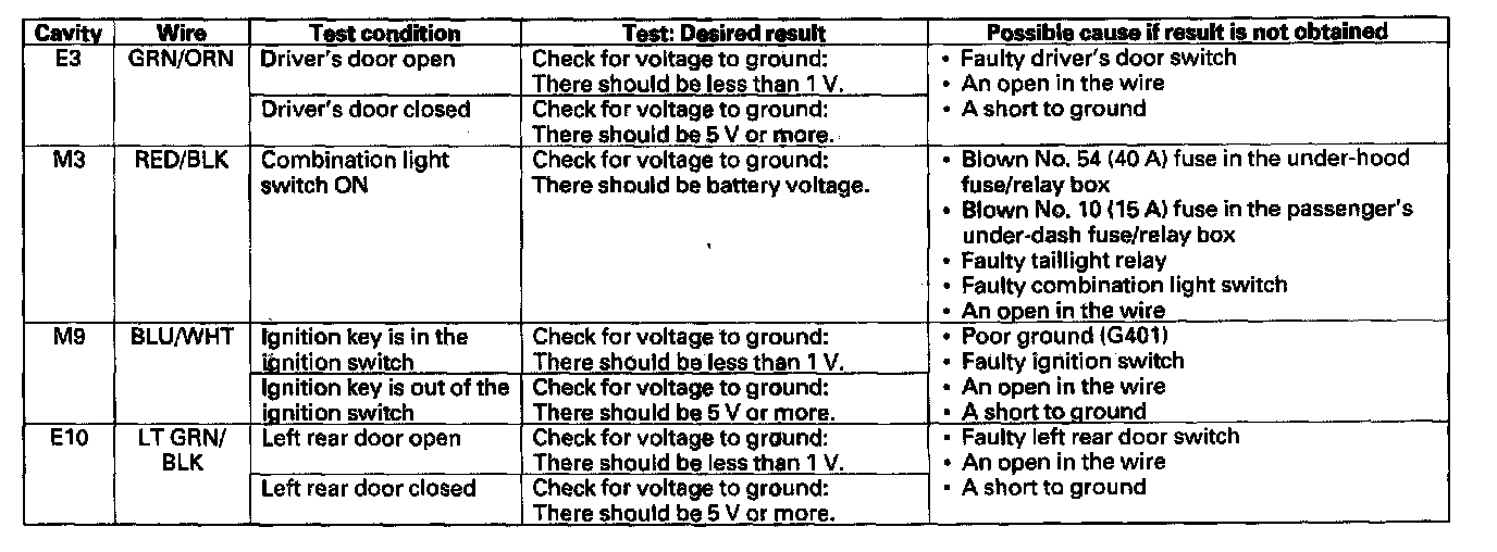 Control Unit Input Test1. Before testing the entry light control functions, troubleshoot the multiplex control system.