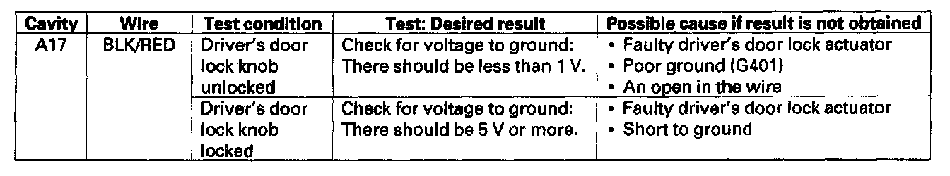 12. Reconnect the connector to the door multiplex control unit, turn the ignition switch ON (II) to keep the system awake, and perform the input test at the connector.