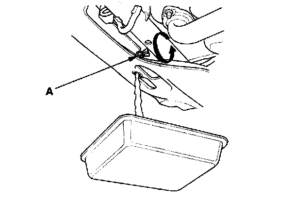 3. Loosen the drain plug (A), and drain the coolant.