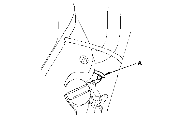 3. Remove the dipstick (yellow loop) (A) from the ATF dipstick guide pipe, and wipe it with a clean cloth.