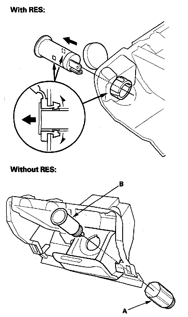 Without RES: Remove the socket (A) and housing (B).