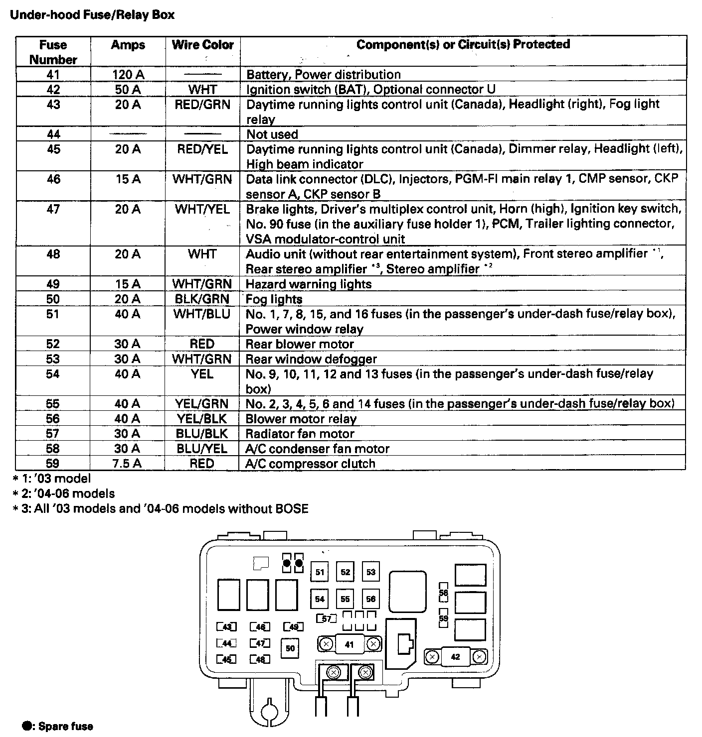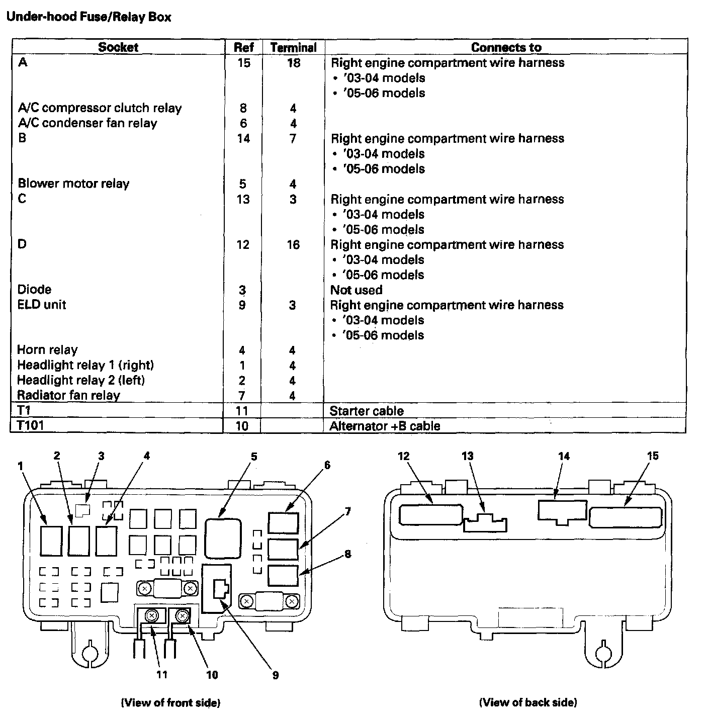 Under-hood Fuse/Relay Box Index: