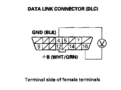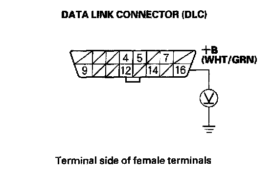 1. Measure voltage between DLC terminal No.16 and body ground.