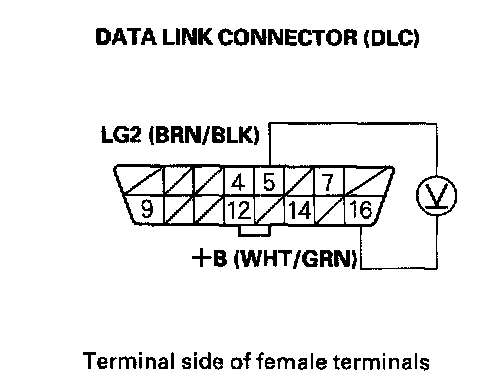 3. Measure voltage between DLC terminals No.5 and No.16.