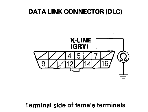 9. Check for continuity between DLC terminal No.7 and body ground.