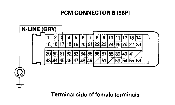 11. Check for continuity between PCM connector terminal B17 and body ground.