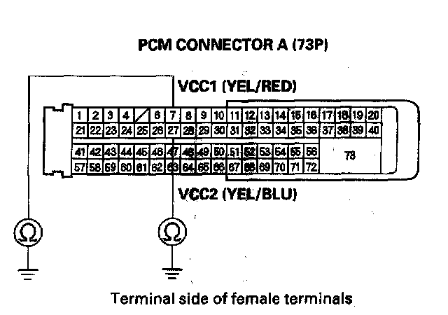 15. Disconnect PCM connectors A (73P) and B (56P).