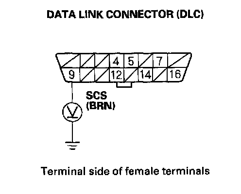 23. Turn the ignition switch OFF, then turn it back ON (II) and measure voltage between DLC terminal No.9 and body ground.