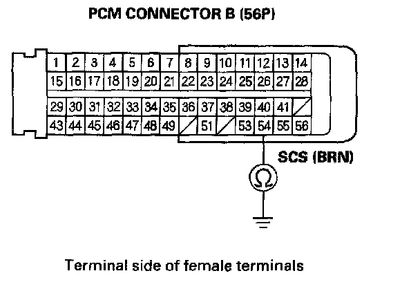 26. Check for continuity between PCM connector terminal B54 and body ground.