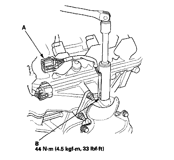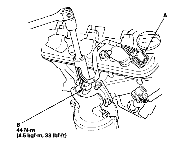 1. Disconnect the rear A/F sensor 8P connector (A), then remove the rear A/F sensor (B).