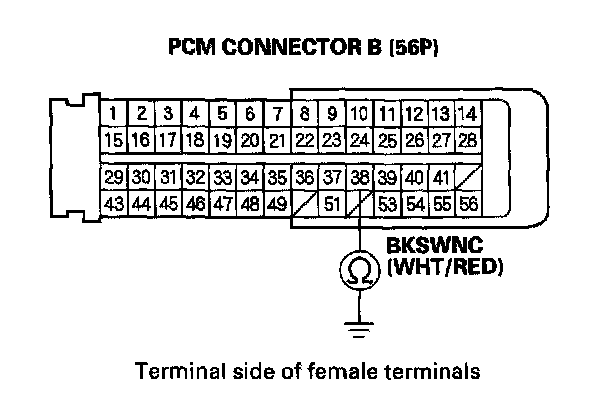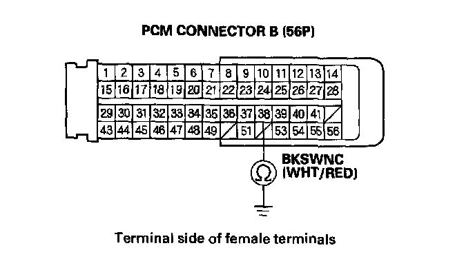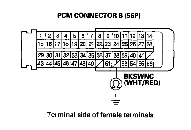 23. Check for continuity between PCM connector terminal B38 and body ground.