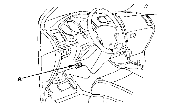 2. If the MIL stays on, connect the HDS to the data link connector (DLC) (A) located under the driver's side of the dashboard.