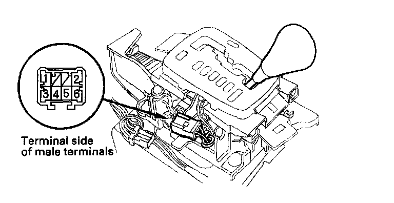 4. Shift the shift lever out of the 1 position, and check for continuity between the terminals in step 3. There should be no continuity.