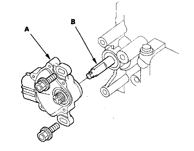 12. Install the transmission range switch (A) gently over the selector control shaft (B), and install the bolts loosely.