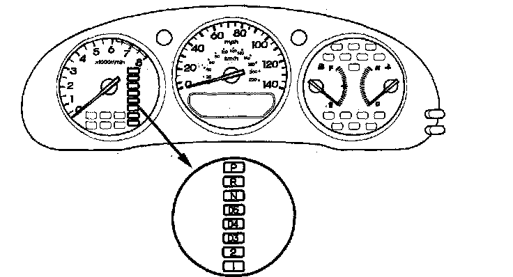 23. Turn the ignition switch ON (II). Move the shift lever through all positions, and check the transmission range switch synchronization with the A/T gear position indicator.