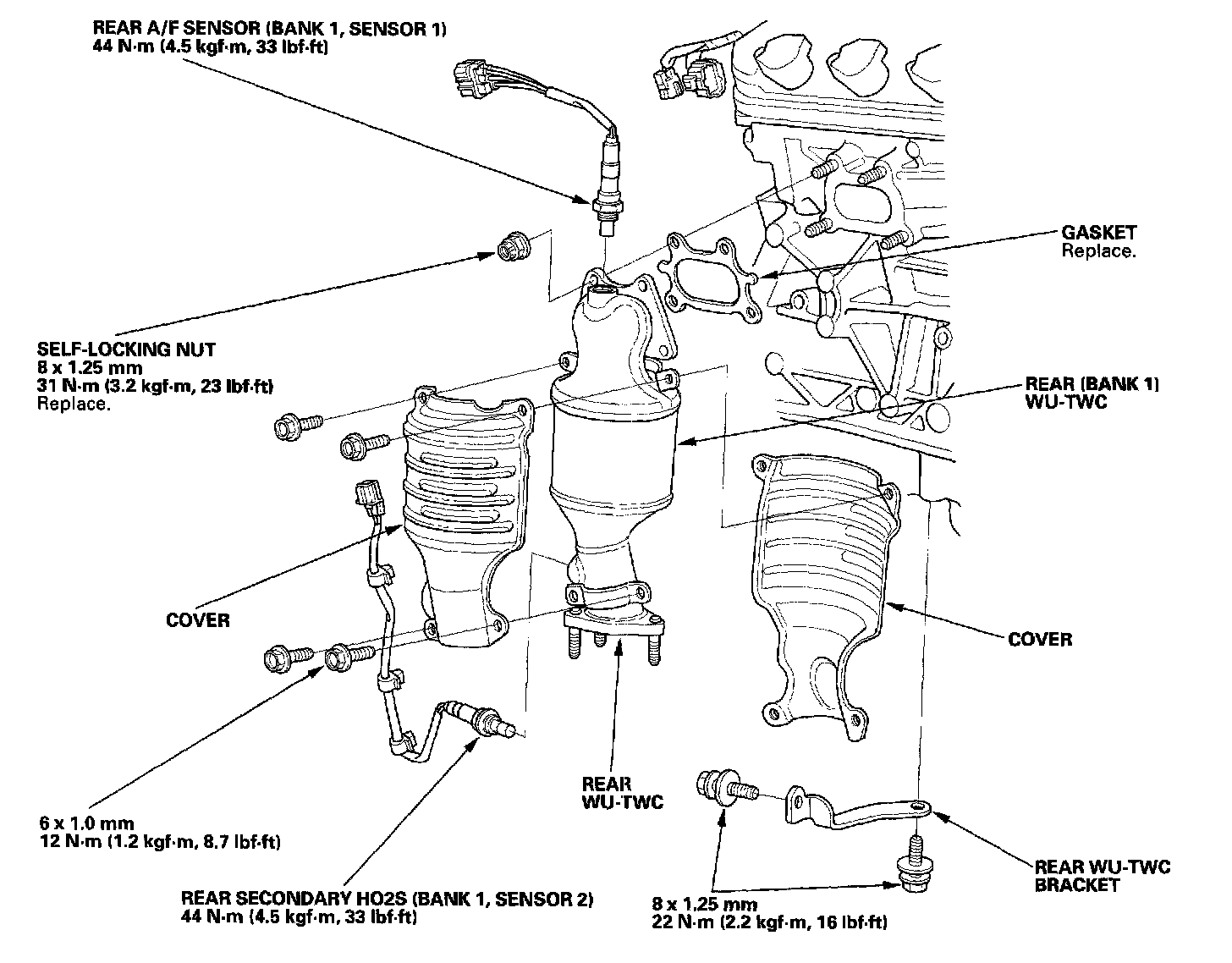 3. Install the rear (Bank 1) WU-TWC, and tighten the nuts in a crisscross pattern in two or three steps.