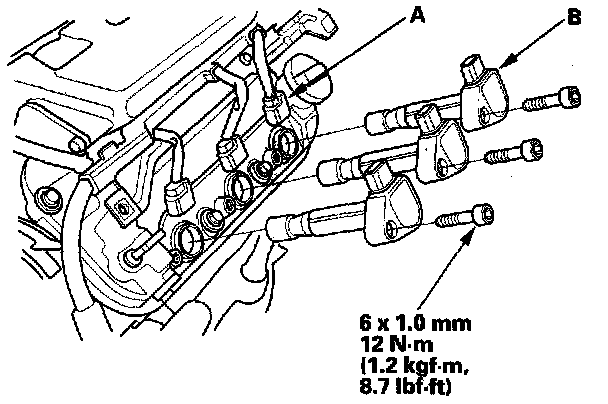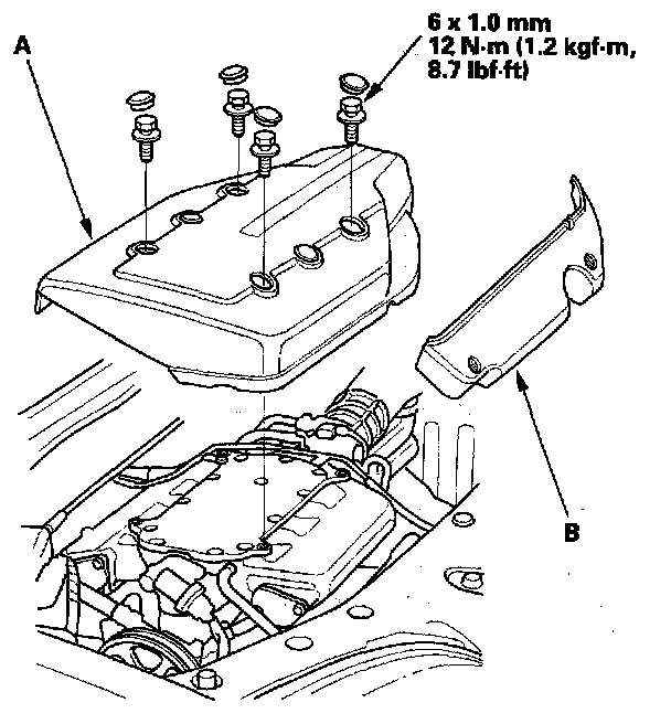 Ignition Coil Removal/Installation1. Remove the intake manifold cover (A) and ignition coil cover (B).