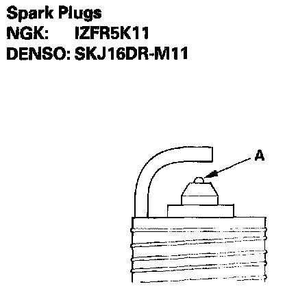 3. Do not adjust the gap (A) of iridium tip plugs; replace the spark plug if the gap is out of specification.