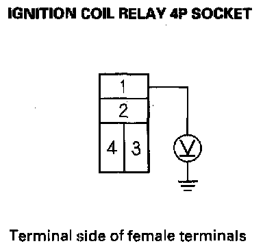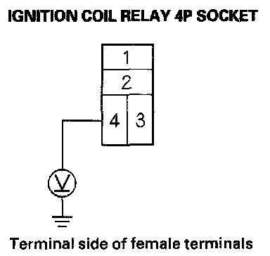 4. Measure the voltage between ignition coil relay 4P socket terminal No. 4 and body ground.