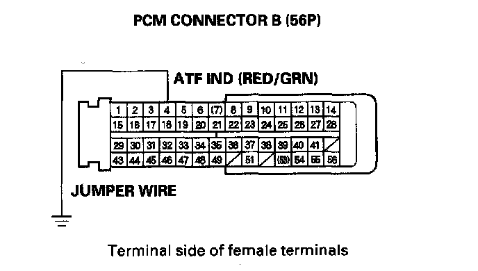 13. Connect PCM connector terminal B4 to body ground with a jumper wire, and turn the ignition switch ON (II).