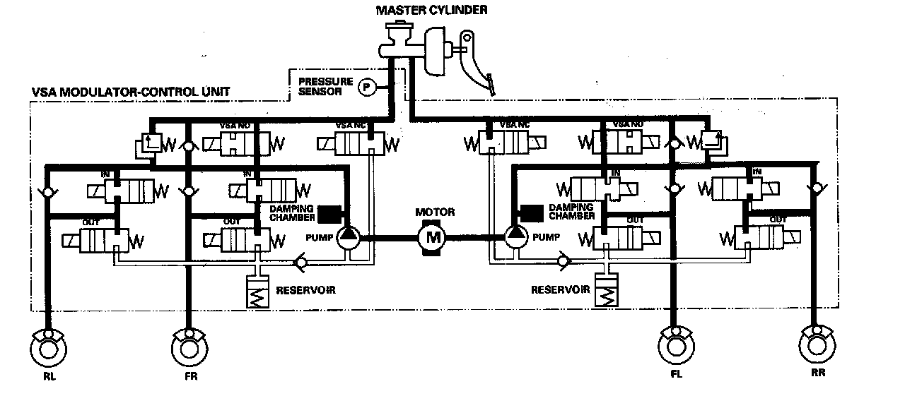 Front and rear caliper fluid is retained by the inlet valve and outlet valve.