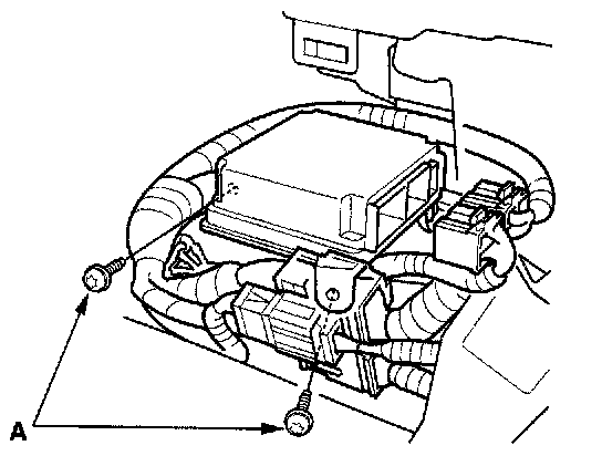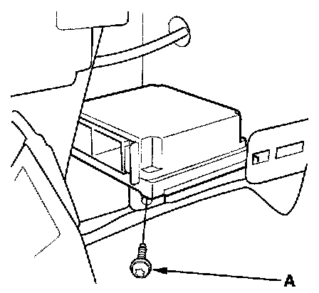 4. Pull down the carpet, then remove the Torx bolt (A) from the SRS unit.