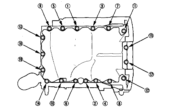 Tighten the bolts in two or three steps. In the final step, tighten all bolts, in sequence, to 12 Nm (1.2 kgf-m, 8.7 ft. lbs.).