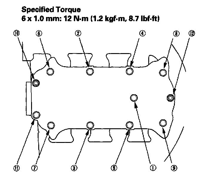 Install the upper cover. Tighten the bolts and nuts sequentially in two or three steps. Always use a new gasket.