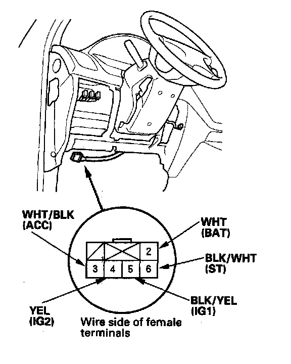 6. If the continuity checks do not agree with the table, replace the steering lock.