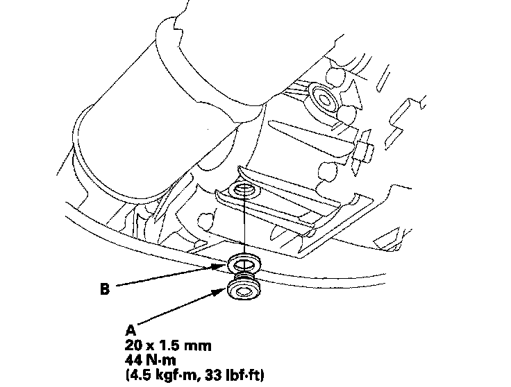 3. Remove the drain plug (A), and drain the transfer fluid (hypoid gear oil).