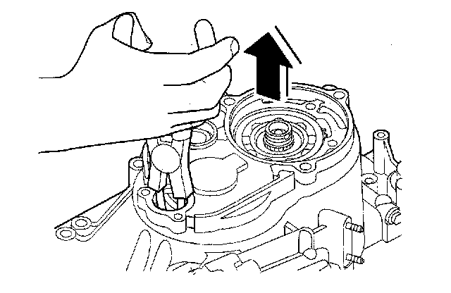 19. While expanding the snap ring of the countershaft bearing using the snap ring pliers, then lift the transmission housing.