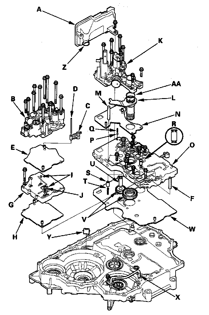45. Remove the O-ring (AA) from the stator shaft, and replace the new O-ring when reassembling the transmission.