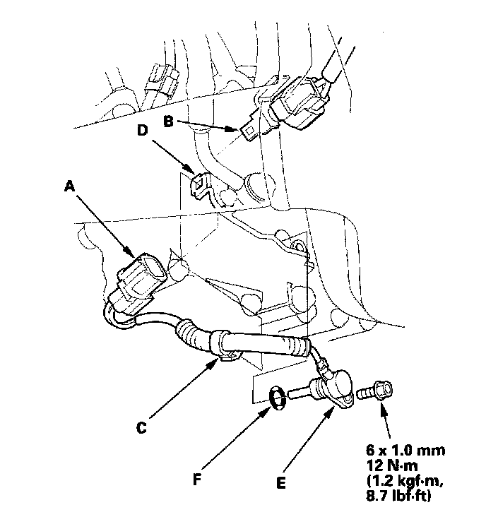 5. Install the new ATF temperature sensor (E) and a new O-ring (F).