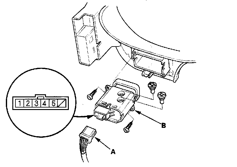 Disconnect the 6P connector (A) from the VTM-4 LOCK button (B), then remove the two screws and the switch.