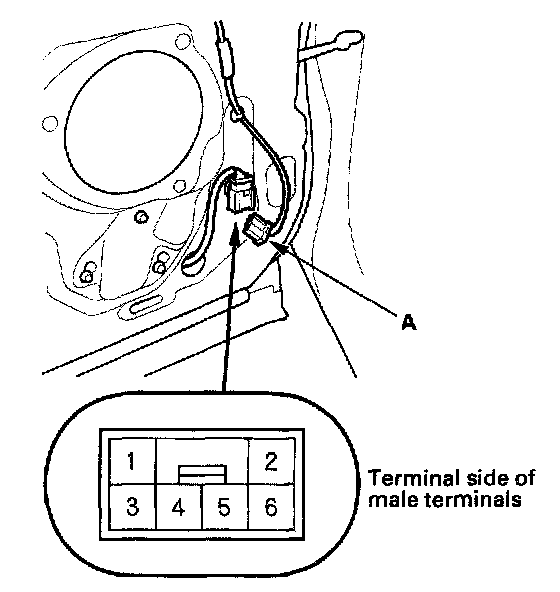 2. Disconnect the 6P connector (A) from the window motor.