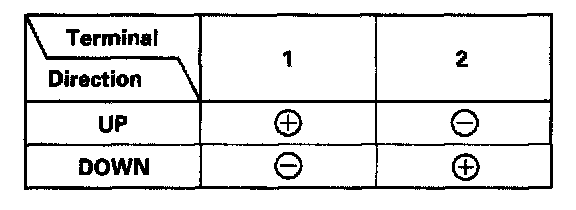- Connect an analog voltmeter between the No. 3 (+) and No. 4 (-) terminals, and run the window motor at down or up. The voltmeter needle should move back and forth alternately, (a digital voltmeter should show the average voltage between 0 - 5 V).