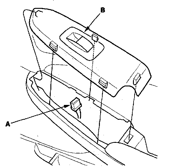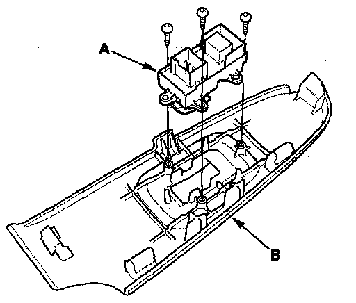 3. Remove the three mounting screws, then remove the power window switch (A) from the switch trim (B).