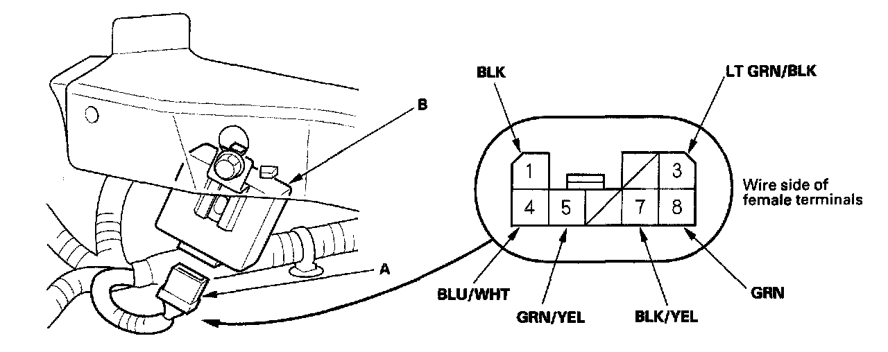 5. Disconnect the 8P connector, and make this test at the connector.