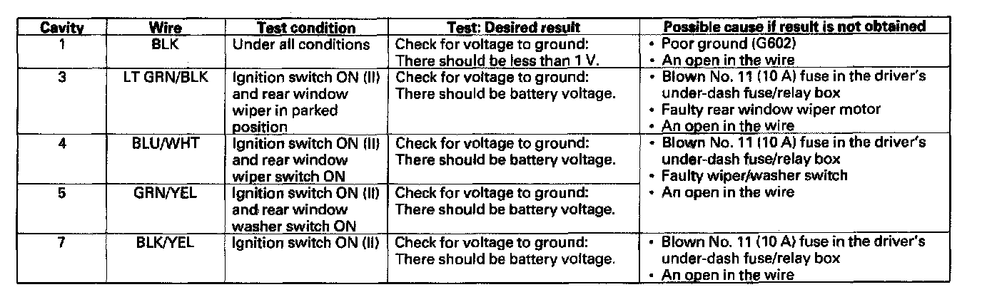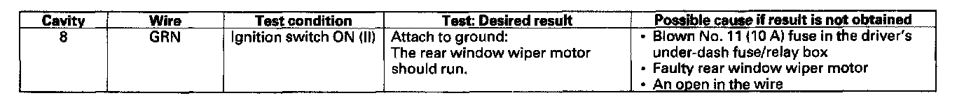 Rear Window Wiper Intermittent Control Unit Input Test