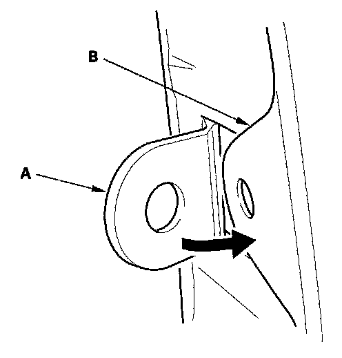 - Before installing the clips in the door opening area, install the front fender fairing (A) on the front fender (B) as shown.