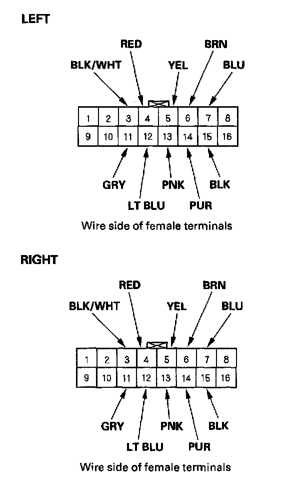 10. Install the new actuator terminals into the connector in the original arrangement as shown.
