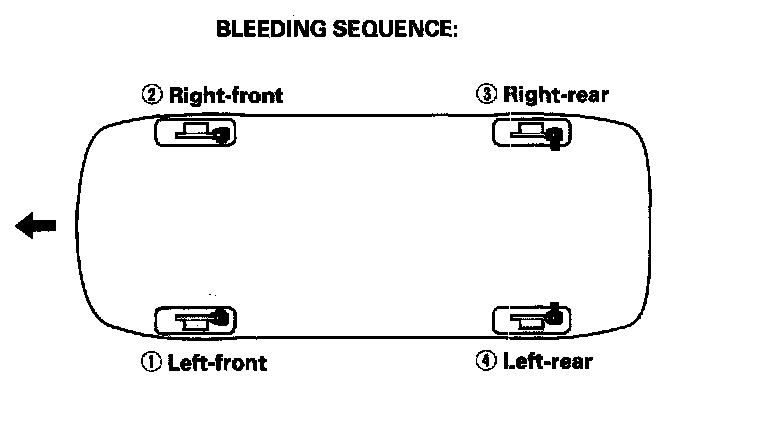 5. Repeat the procedure for each wheel in the sequence shown following until air bubbles no longer appear in the fluid.