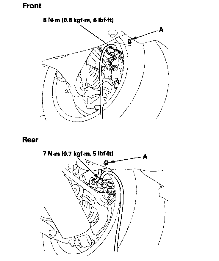 NOTE: The front and rear bleed screw caps (A) are different. Make sure to install them in the proper position.