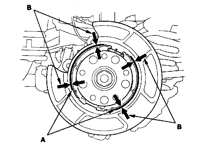 5. Measure the parking brake lining thickness (B). Measurement does not include brake shoe thickness.