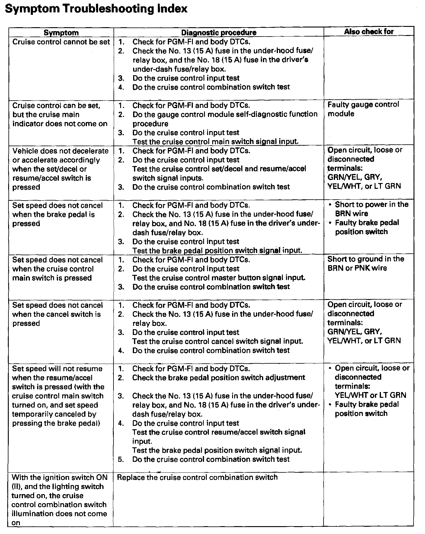 Symptom Troubleshooting Index: