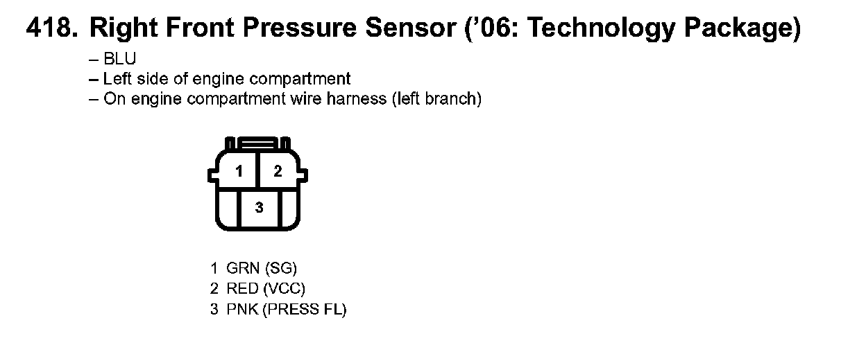 418. Right Front Pressure Sensor ('06: Technology Package):
